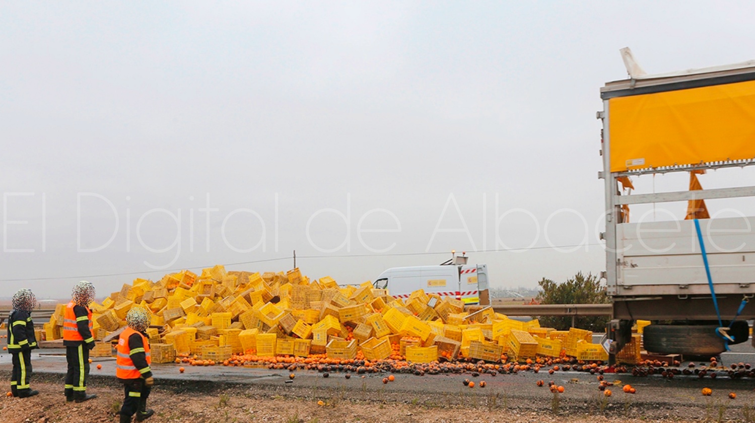 Vuelca un camión cargado de mandarinas en Castilla-La Mancha y su conductor resulta herido