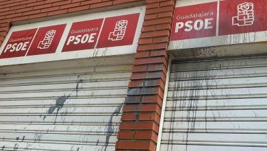 Ataque vandálico contra la sede del PSOE en esta capital de Castilla-La Mancha; fotos