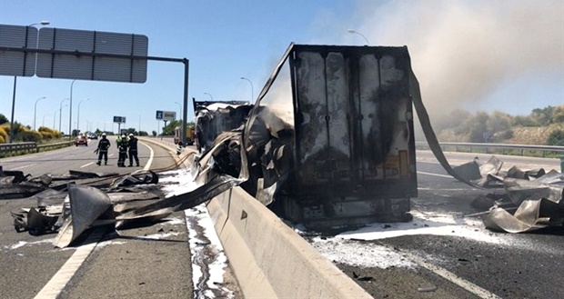 Sale ardiendo en Castilla-La Mancha un camión cargado de carne