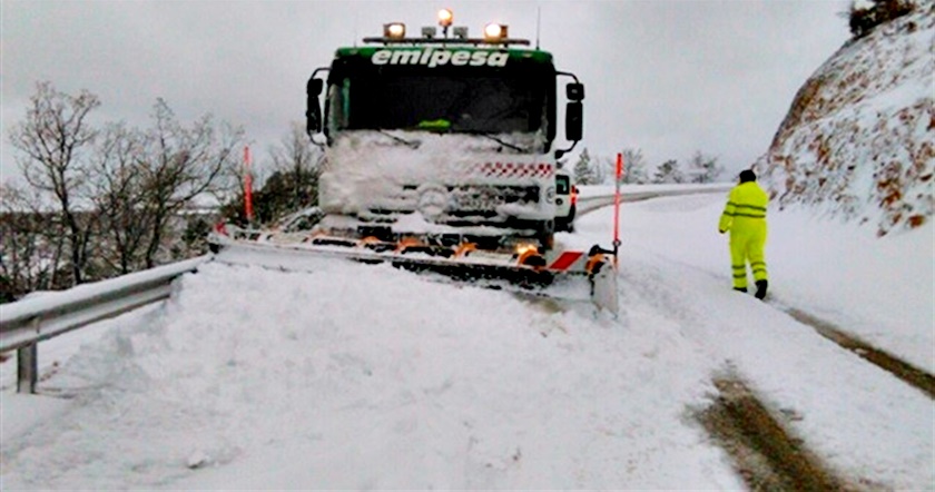 Una quitanieves queda atrapada en la nieve en Castilla-La Mancha