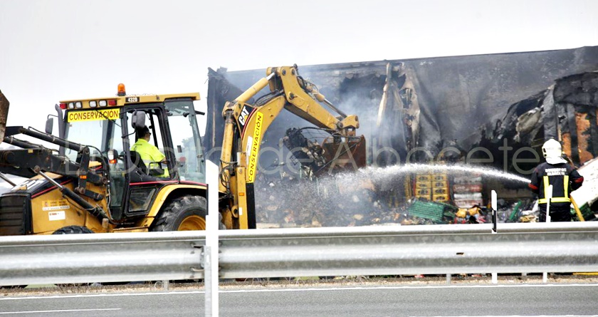 El incendio de un camión obliga a cortar la autovía Albacete-Murcia