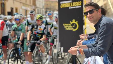 Manuel Serrano desea mucho éxito deportivos al ciclista vinculado con Albacete, Javier Romo, durante su participación en La Vuelta 2025