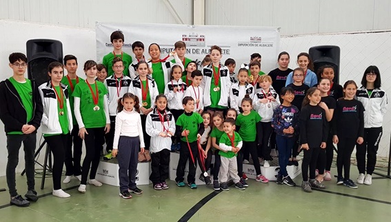 FOTOS | Aguas Nuevas acogió el Campeonato provincial Copa Diputación escolar y Federados de Trampolín