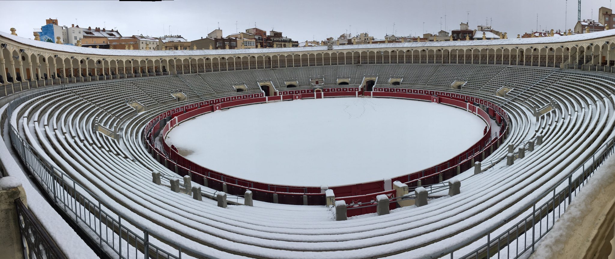Espectacular imagen de la Plaza de Toros de Albacete nevada