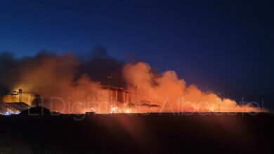 VÍDEO | Noche de intenso trabajo para sofocar el importante incendio en una empresa agrícola en Albacete
