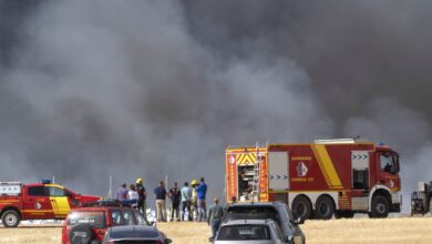 Los bomberos se retiran del incendio en una planta de reciclaje de Castilla-La Mancha