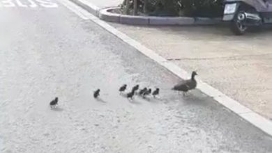 La tierna imagen de esta familia de patos por las calles de Albacete capital; vídeos